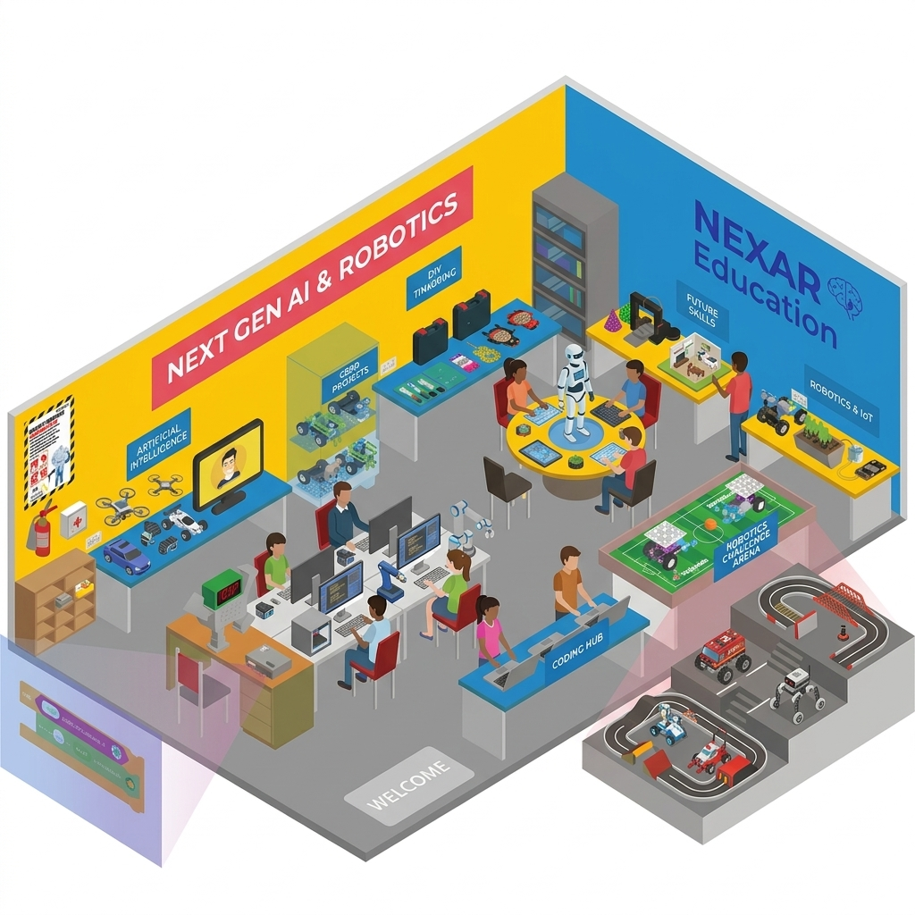 Discover the power of the NEXAR ecosystem – a revolutionary Coding, AI, and Robotics solution for schools! Our educational specialists are here to show you how to harness the potential of this cutting–edge technology. In as little as one hour, we can assign the right resources to your specific educational requirements and help unlock the countless possibilities NEXAR Education provides. Contact us for a free demonstration tailored to fit your school‘s schedule. Act now and let NEXAR revolutionize the way you learn.